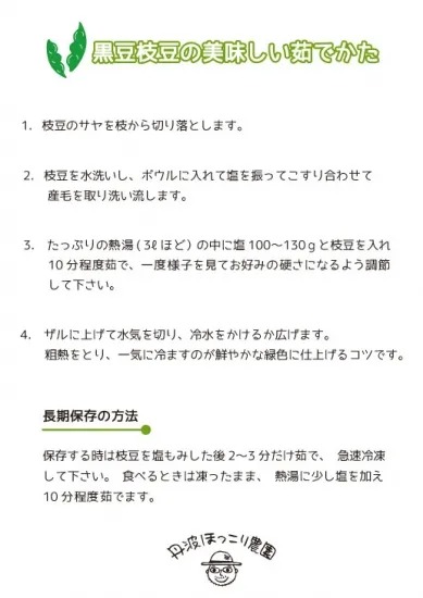 黒豆が黒くなる前の、10月初旬から2~3週間の限られた時期のみに収穫が行われる、貴重な枝豆です。